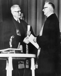 On April 23, 1968, Bishop Reuben H. Mueller, of The Evangelical United Brethren Church, and Bishop Lloyd C. Wicke, of The Methodist Church, joined hands at the General Conference in Dallas, Texas. They declared “Lord of the Church, we are united in Thee, in Thy Church and now in The United Methodist Church.”